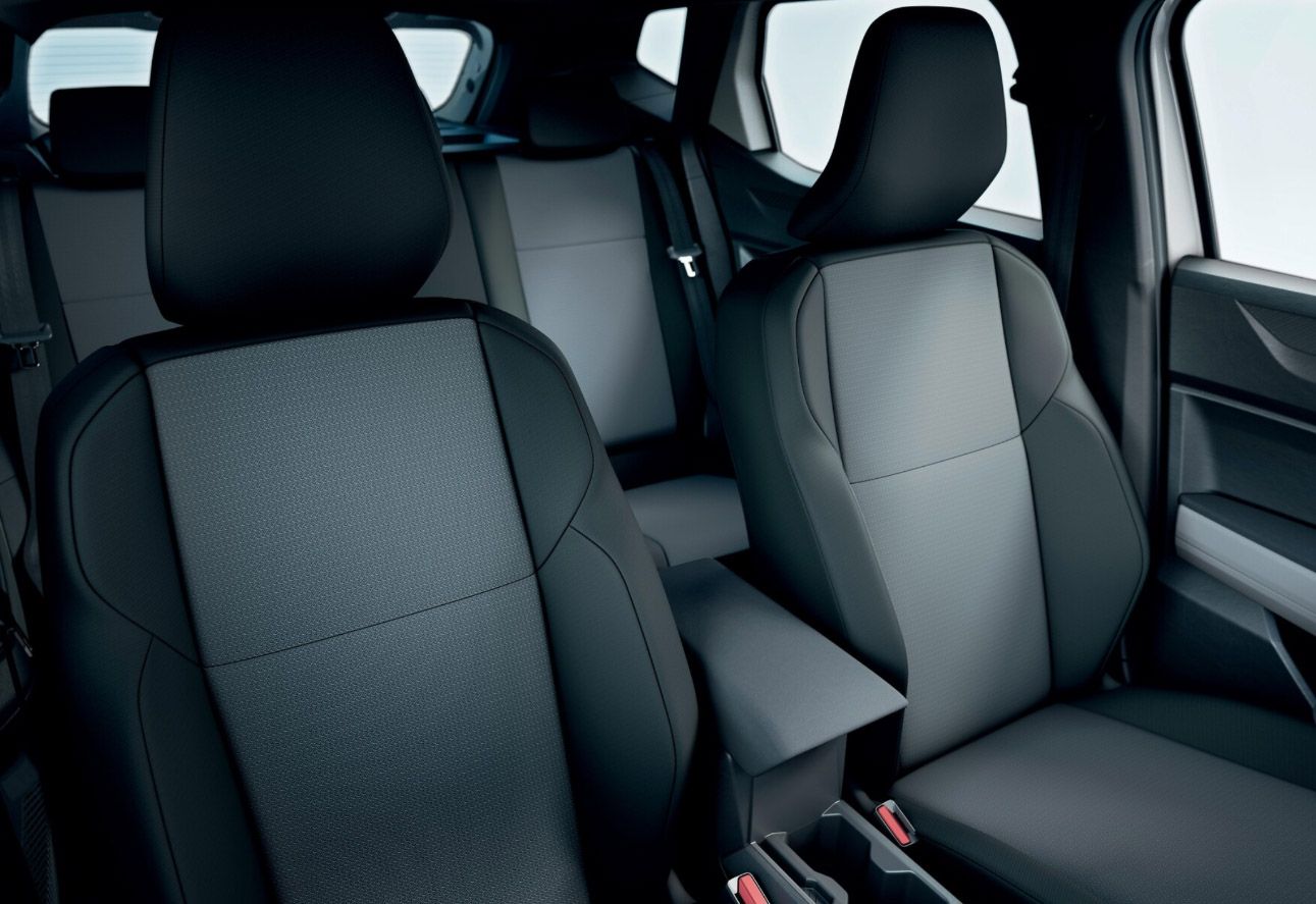 Materialul textil este deosebit de rezistent, dar în același timp plăcut la atingere, garantând confort chiar și în timpul călătoriilor lungi. Țesătura nu se scămoșează, nu se decolorează și își păstrează aspectul impecabil în timp. Combinația negru–gri texturat se integrează perfect în estetica habitaclului Bigster, conferindu-i un aspect modern și coerent cu stilul robust al modelului.